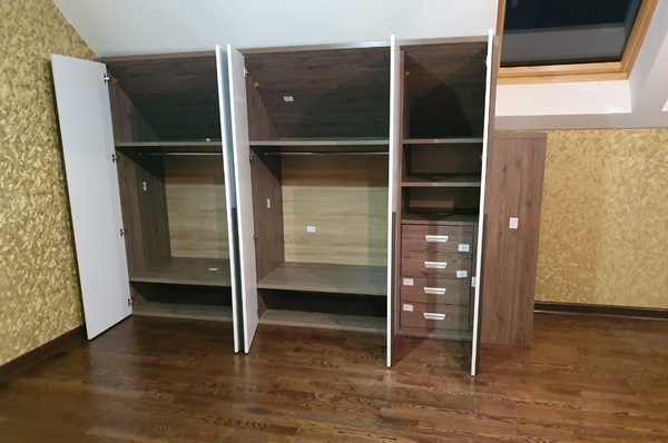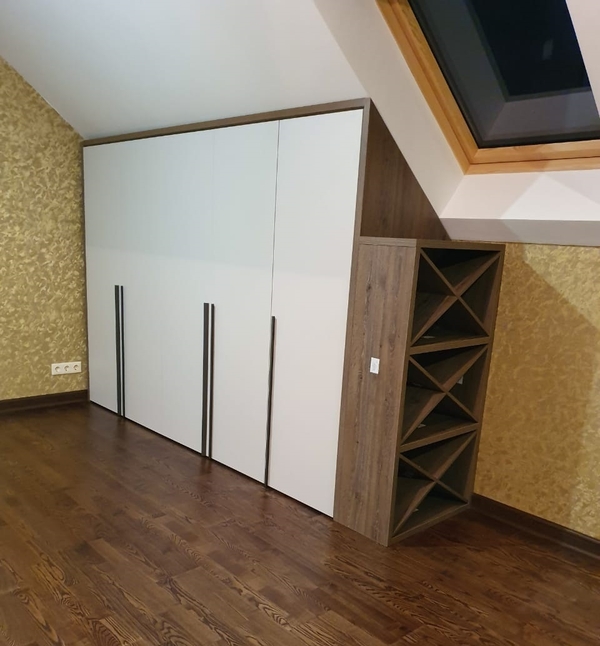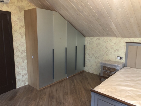 Стильный распашной шкаф в детскую комнату на мансарду в загородный дом