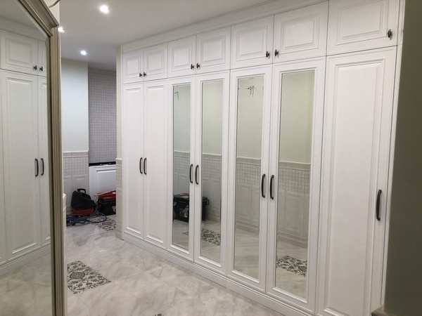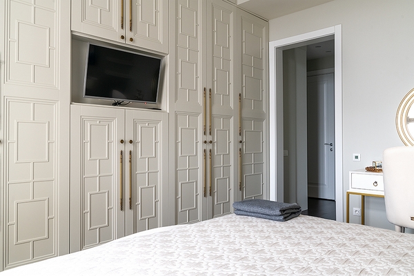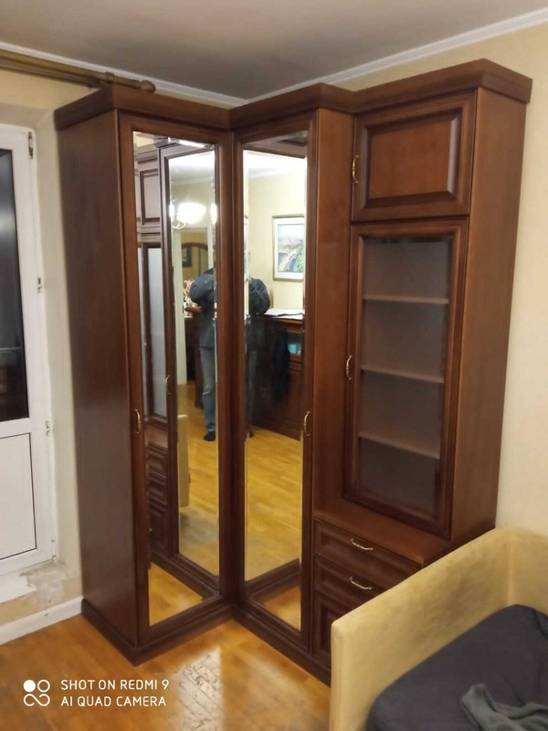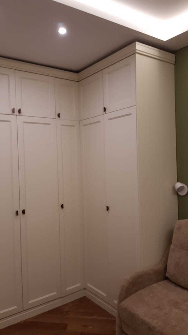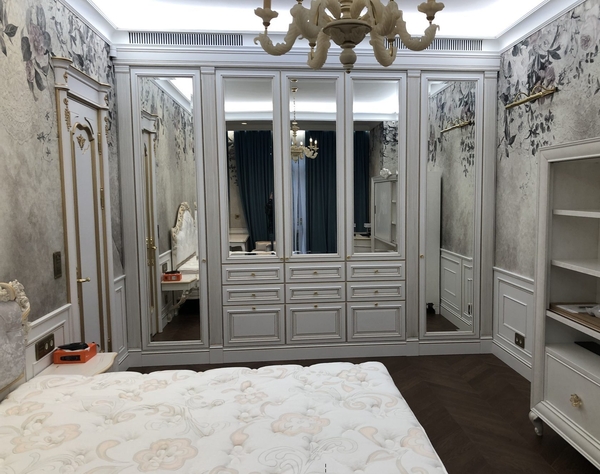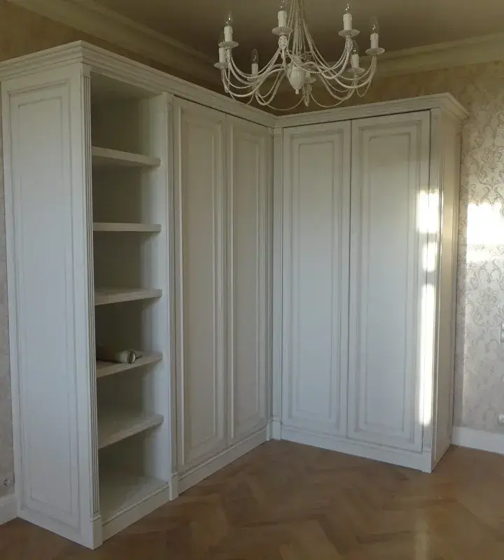 Угловой шкаф-гардеробная комната в стиле лёгкой классики