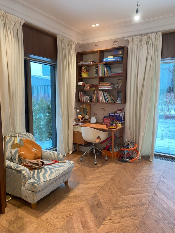 Угловой шкаф, переходящий в рабочий стол и шкафы для книг