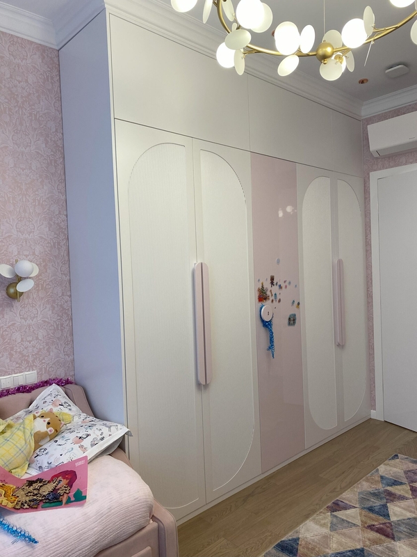 Шкаф в детскую комнату для девочки в скошенную нишу