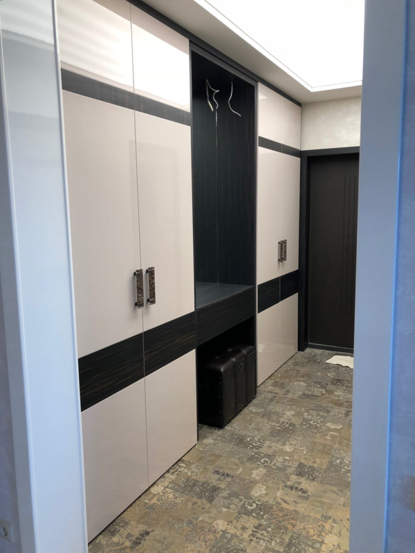 Симметричные шкафы в прихожую с подвесными ящиками и подсветкой