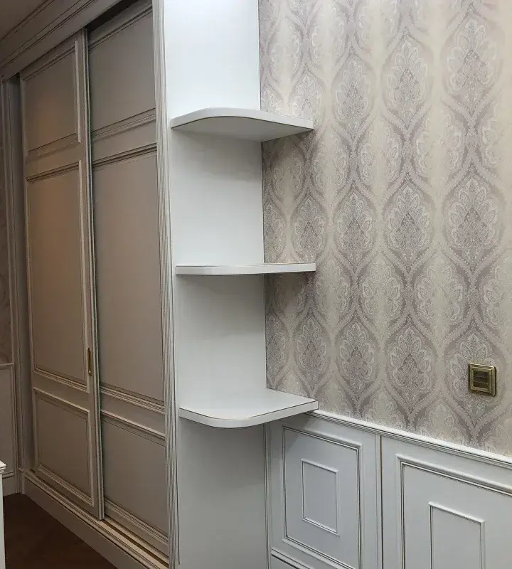 Шкаф купе в современном стиле переходящий в распашной шкаф